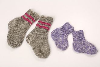Детские шерстяные носки ручной вязки. Все наши детские носки связаны из нити ручной овечьей пряжи, белого либо серого цвета. Такие мягкие и теплые, что детишкам захочется их носить по дому в любое время года, благодаря чему их ножки не будут мерзнуть, и они не будут простужаться.