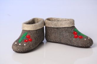 Женские высокие тапочки ручной работы, которые также похожи на низкие полуваленки. Однако, изначально они задуманы для носки в помещении, например, в загородном доме или в квартире.